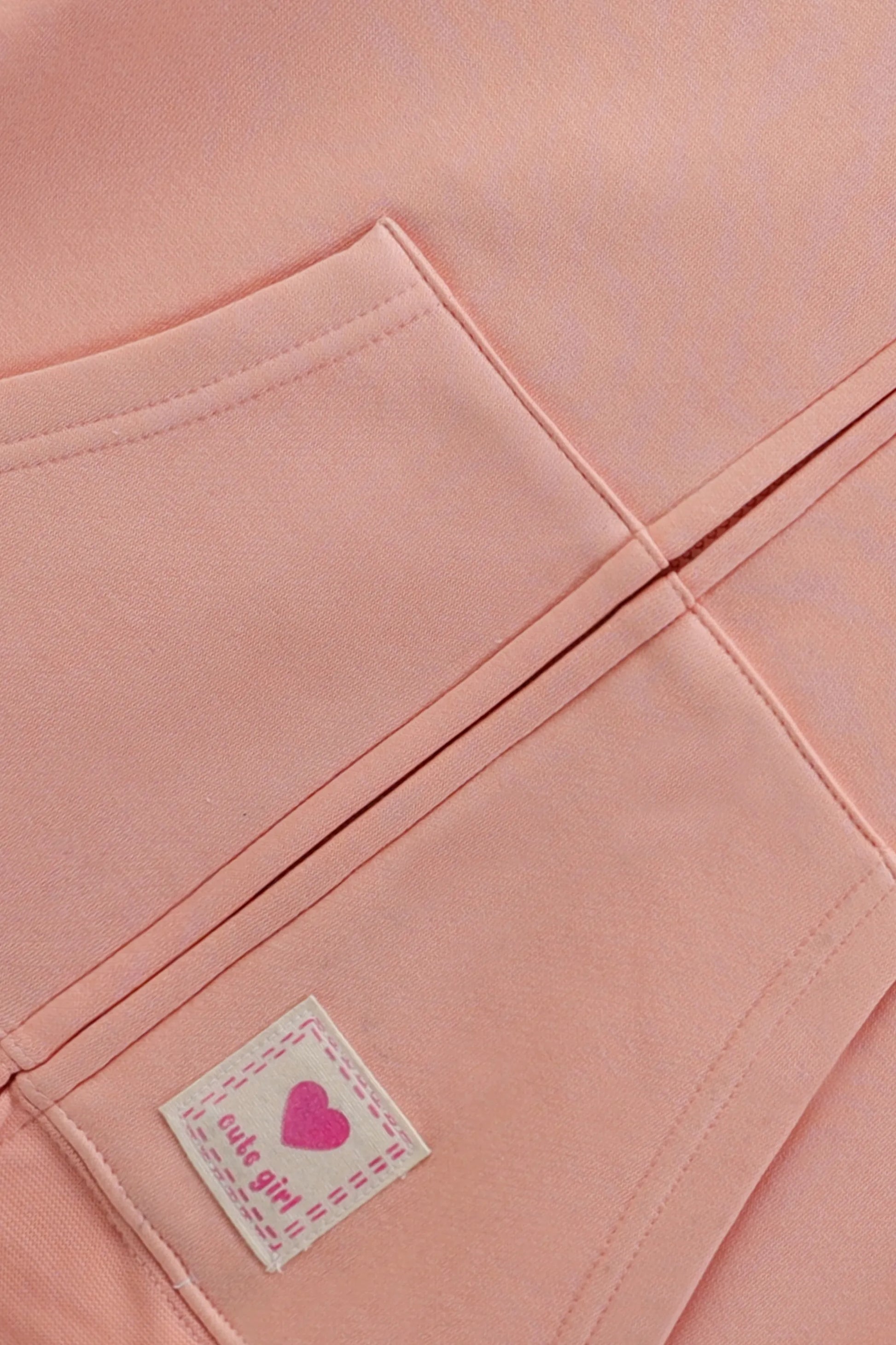 Wrap her in soft fleece warmth with this zip-up peach hoodie, featuring a cozy hood, relaxed fit, full-length raglan sleeves and front kangaroo pockets. The delicate shade adds charm, while the clean design keeps it versatile. Perfect for playground adventures, after-school strolls, or cozy movie nights at home.