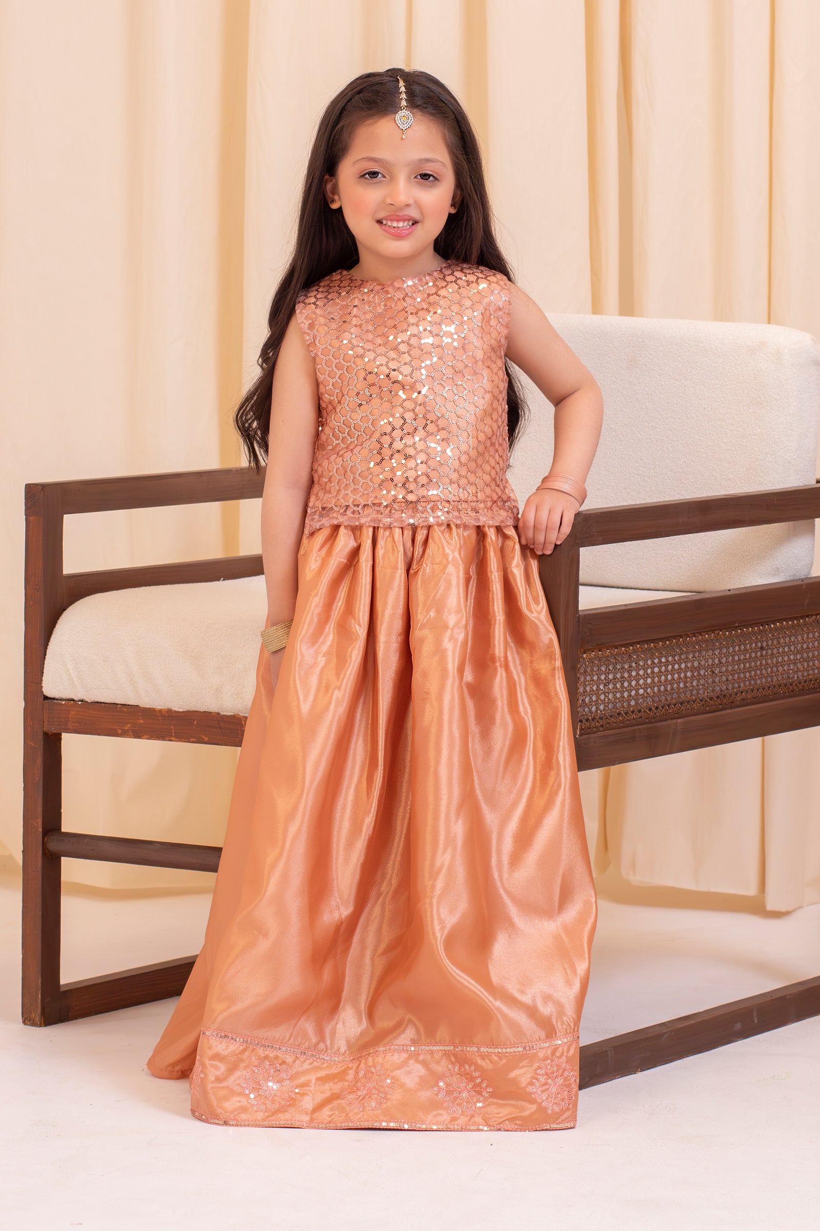 Sequence Embellished Light Peach Lehnga Set Sequence Embellished Light Peach Lehnga Set