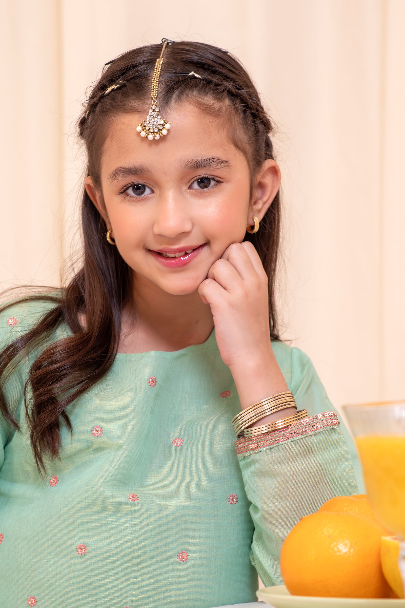 Mint & Gold Fancy Emboidered Gharara Set - 3pc