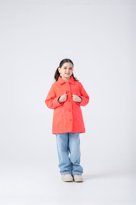 Girls Bold Coral Felt Coat Girls Bold Coral Felt Coat