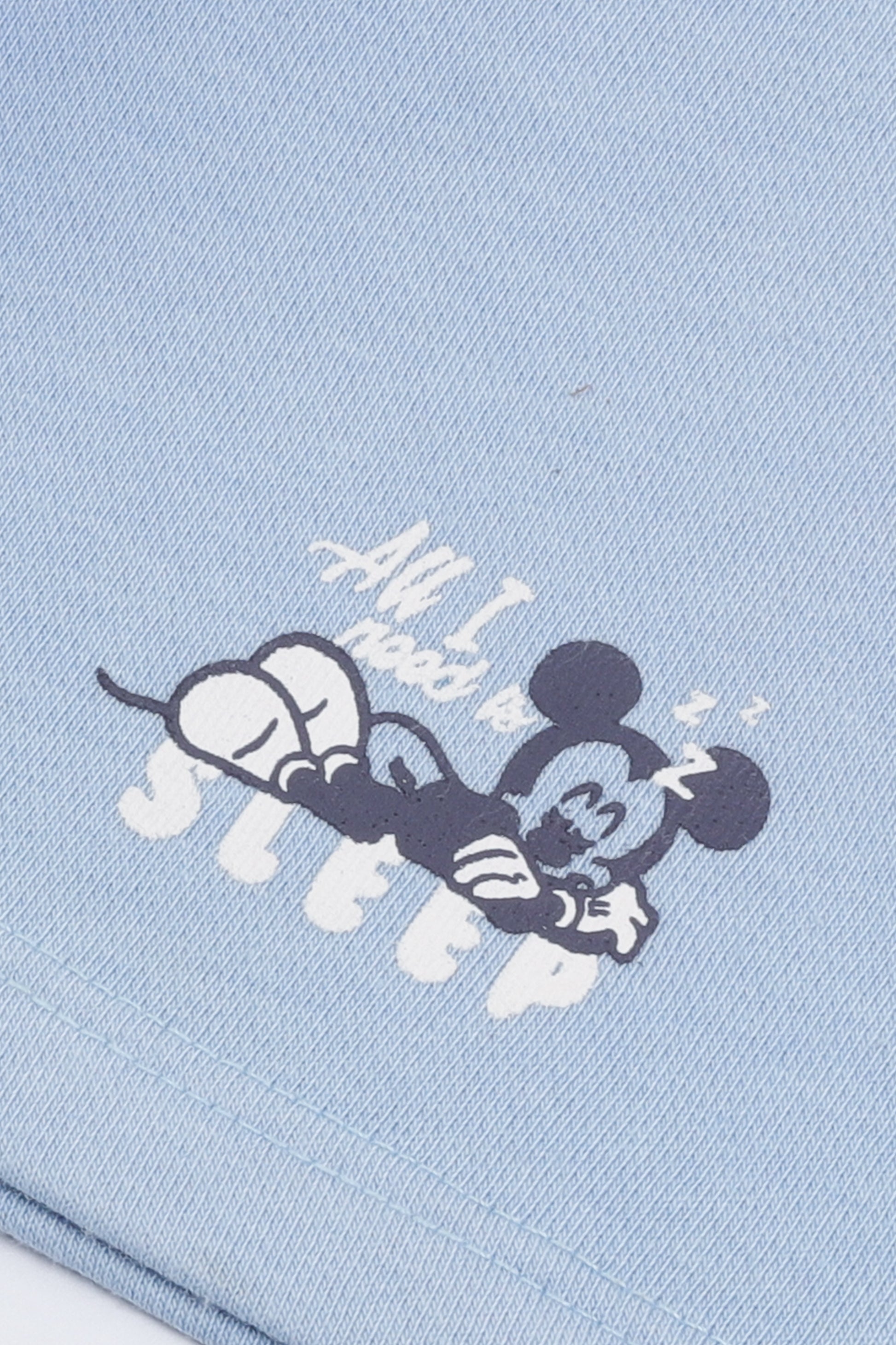 Embrace comfort in our Sky Blue Terry Shorts featuring a playful Mickey Mouse print with the whimsical phrase "All I Need is Sleep." Lounge in style with the cozy fabric, perfect for relaxing moments.