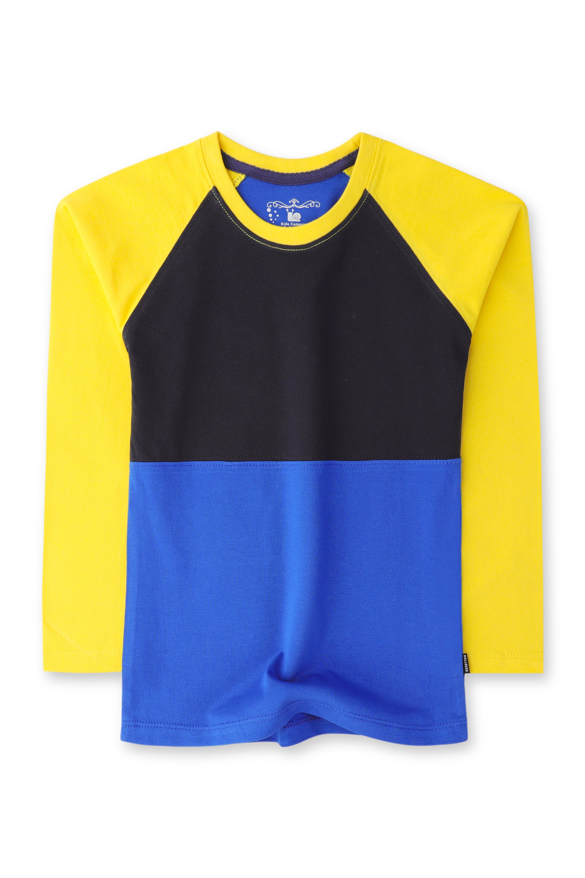 Elevate your child's everyday look with the Yellow Colorblock Raglan Tee. Featuring a unique colorblock design in cheerful yellow and bold blue, this t-shirt is made from premium heavy jersey fabric that stands up to any adventure. The raglan sleeves add a trendy touch while ensuring maximum mobility, making it a go-to choice for energetic days.