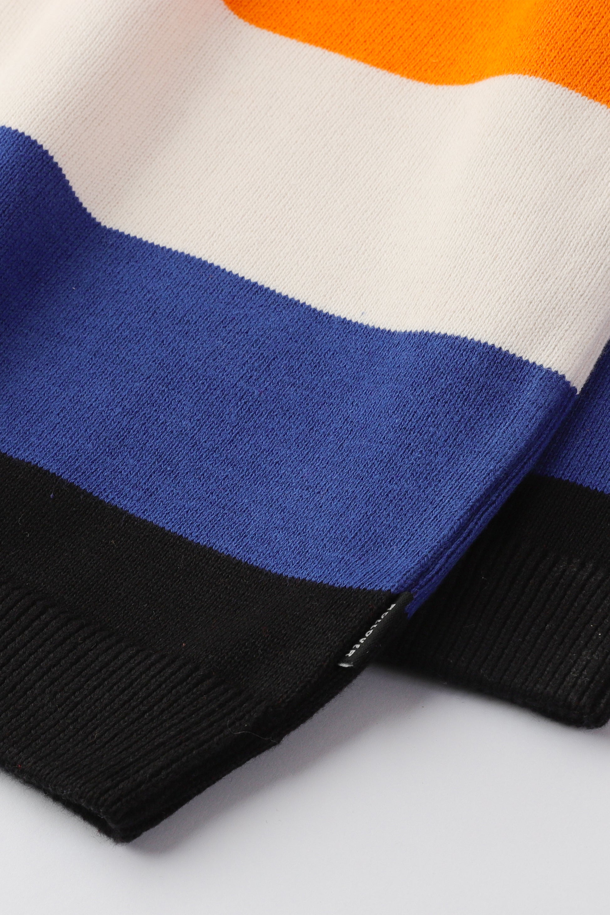 Infuse some fun into his wardrobe with this multicolor striped crew neck pullover. The soft knit fabric offers a cozy feel, while the long sleeves provide full coverage for colder days. Ideal for pairing with trousers or jeans, this sweater makes dressing up for casual or semi-formal occasions a breeze.