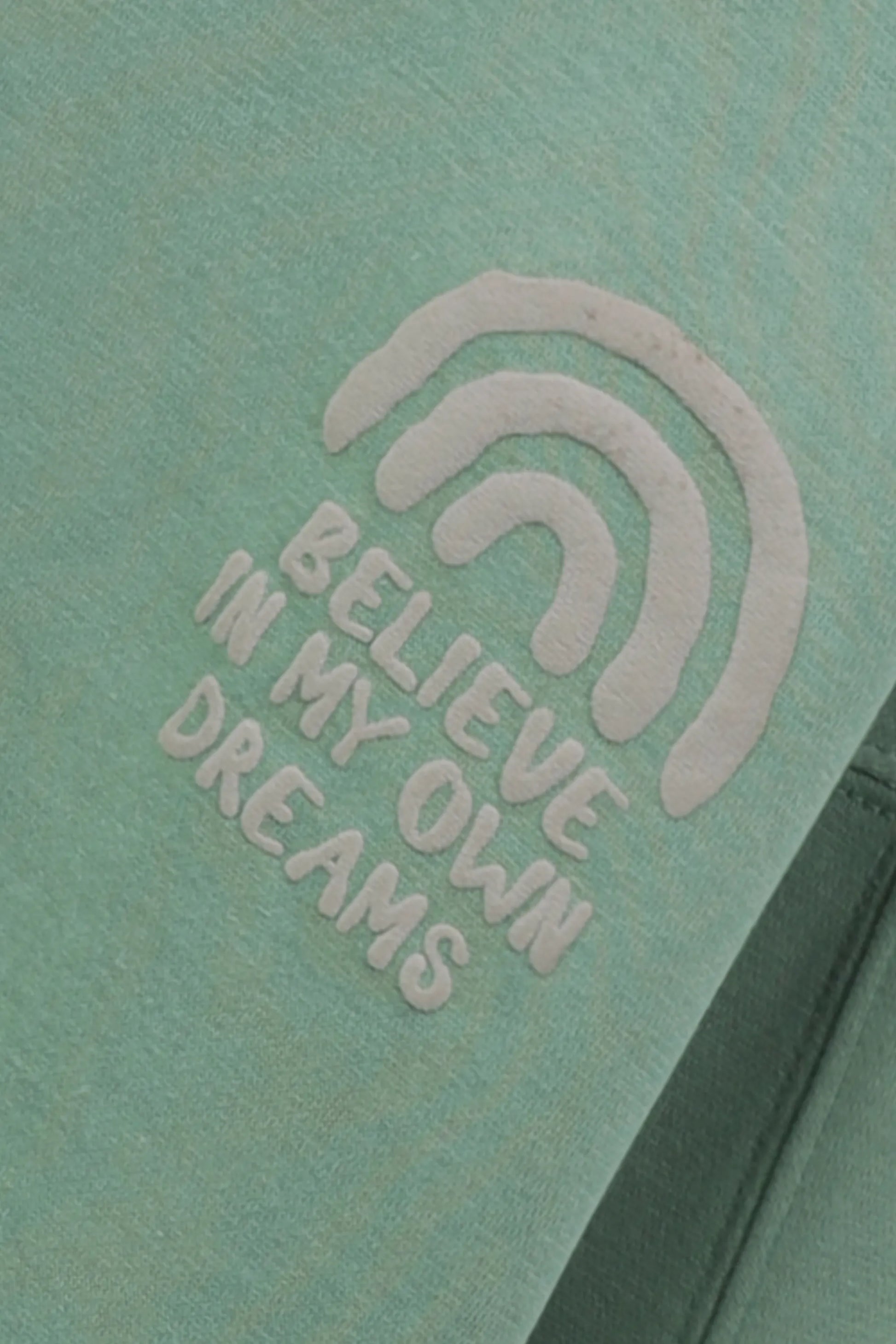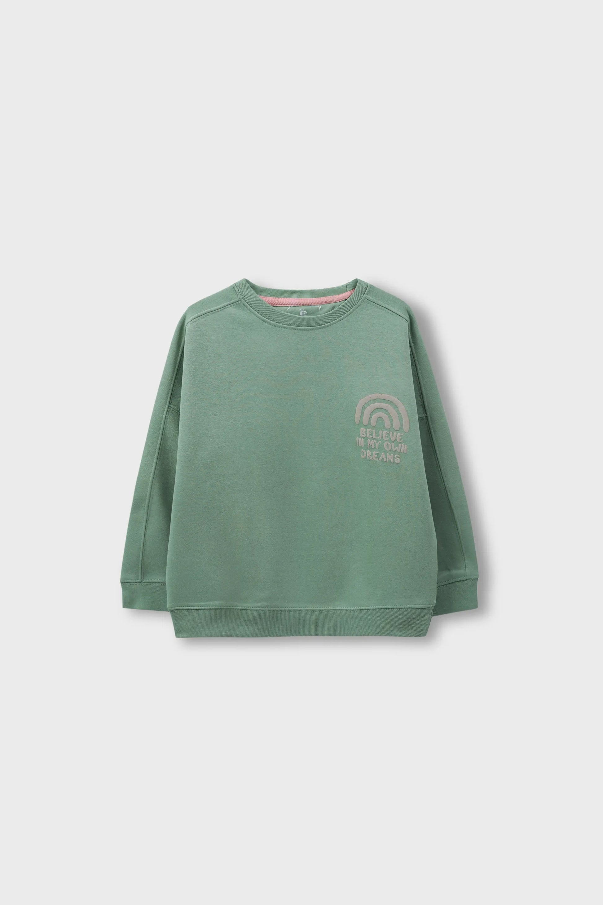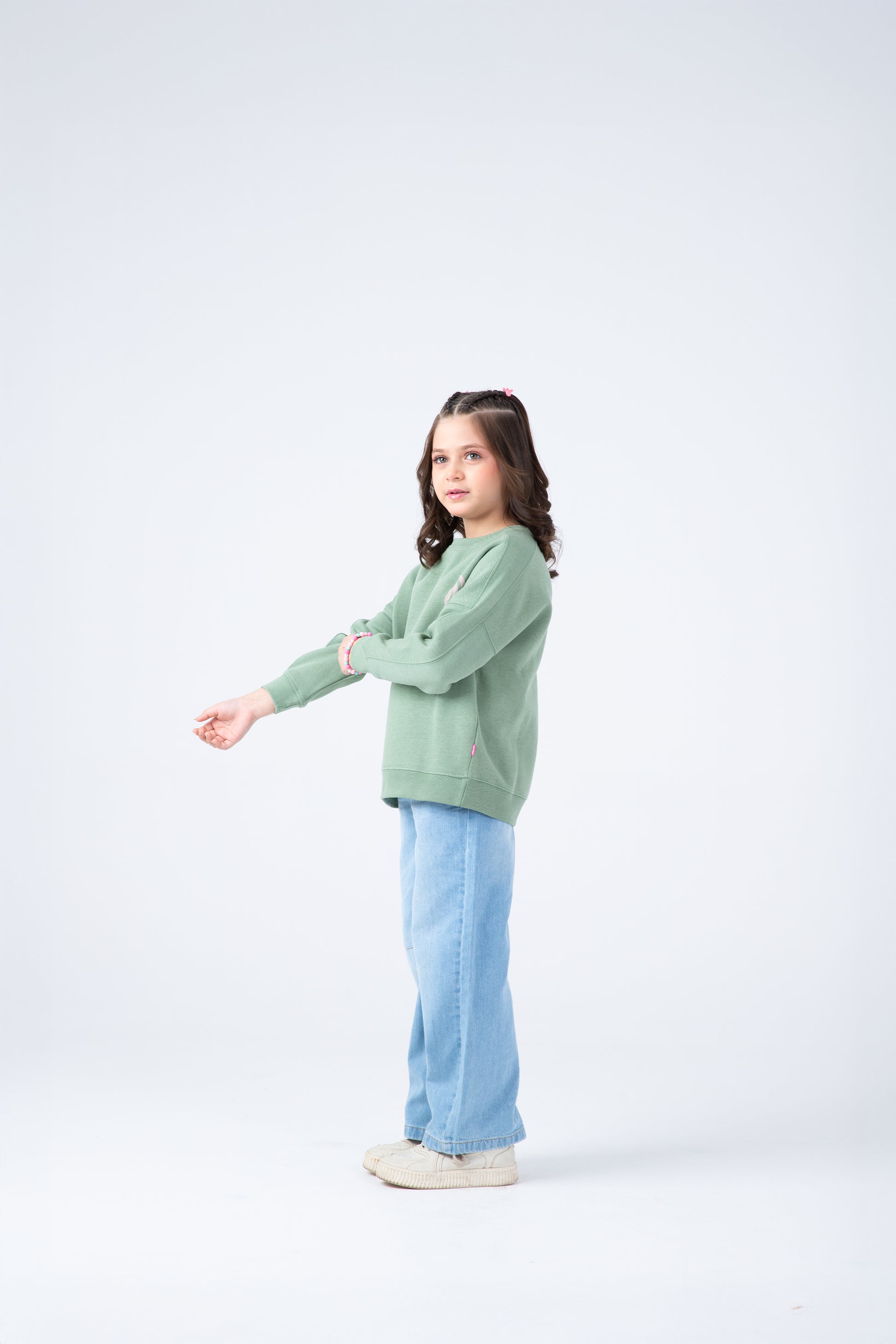 Elevate your casual look with this sage-green fleece sweatshirt. Designed with a vibrant chest graphic, baggy fit, and matching ribbed finishes, it’s perfect for laid-back days. The cut-and-sew panels on the front and sleeves add a unique touch, combining comfort and fashion effortlessly.