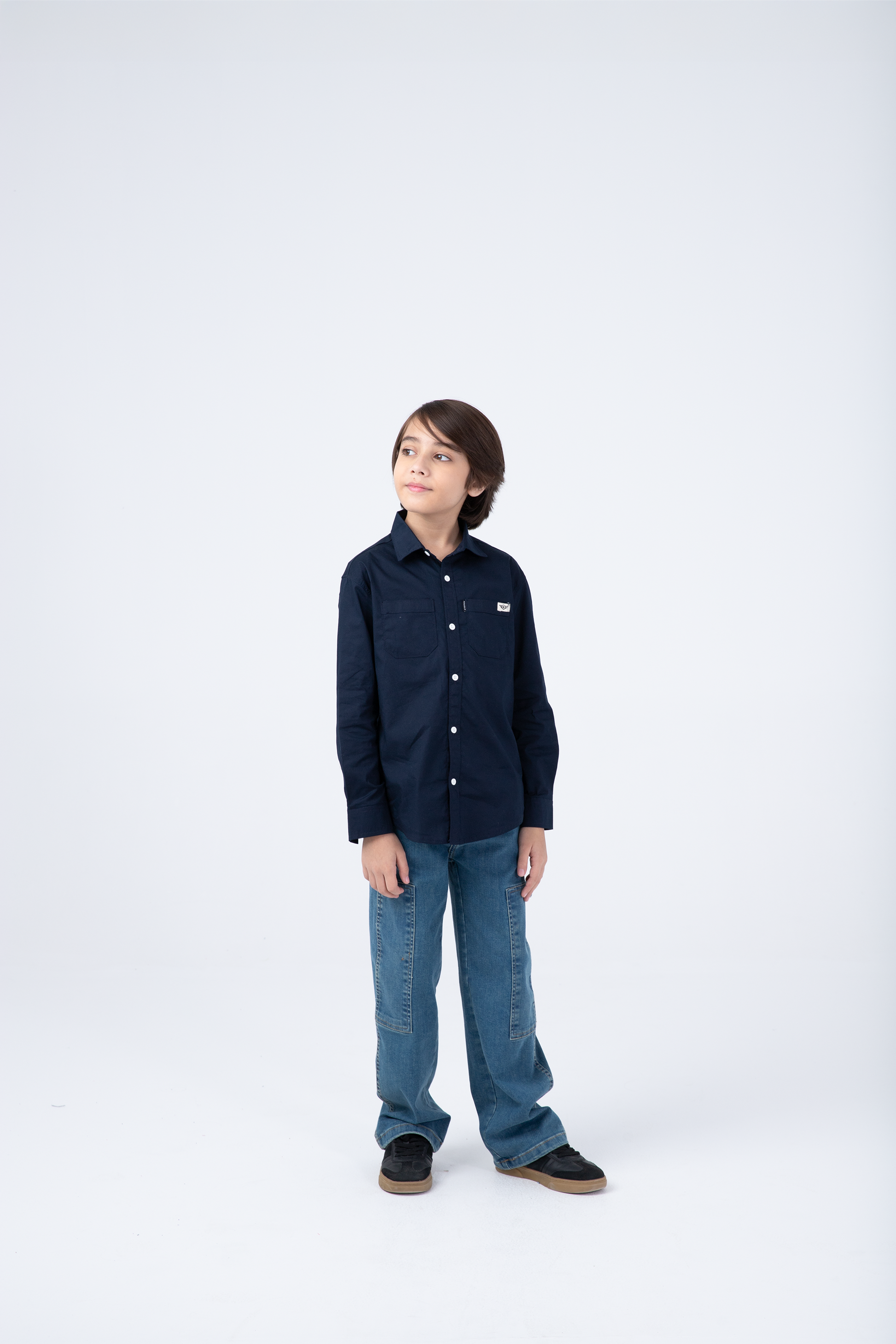 Crafted in breathable cotton, this sleek navy shirt is a closet essential for boys who love smart casuals. Featuring dual flap pockets and a full button-down front, it blends clean lines with practical design. Ideal for layering or wearing solo, it's a go-to for polished everyday looks.