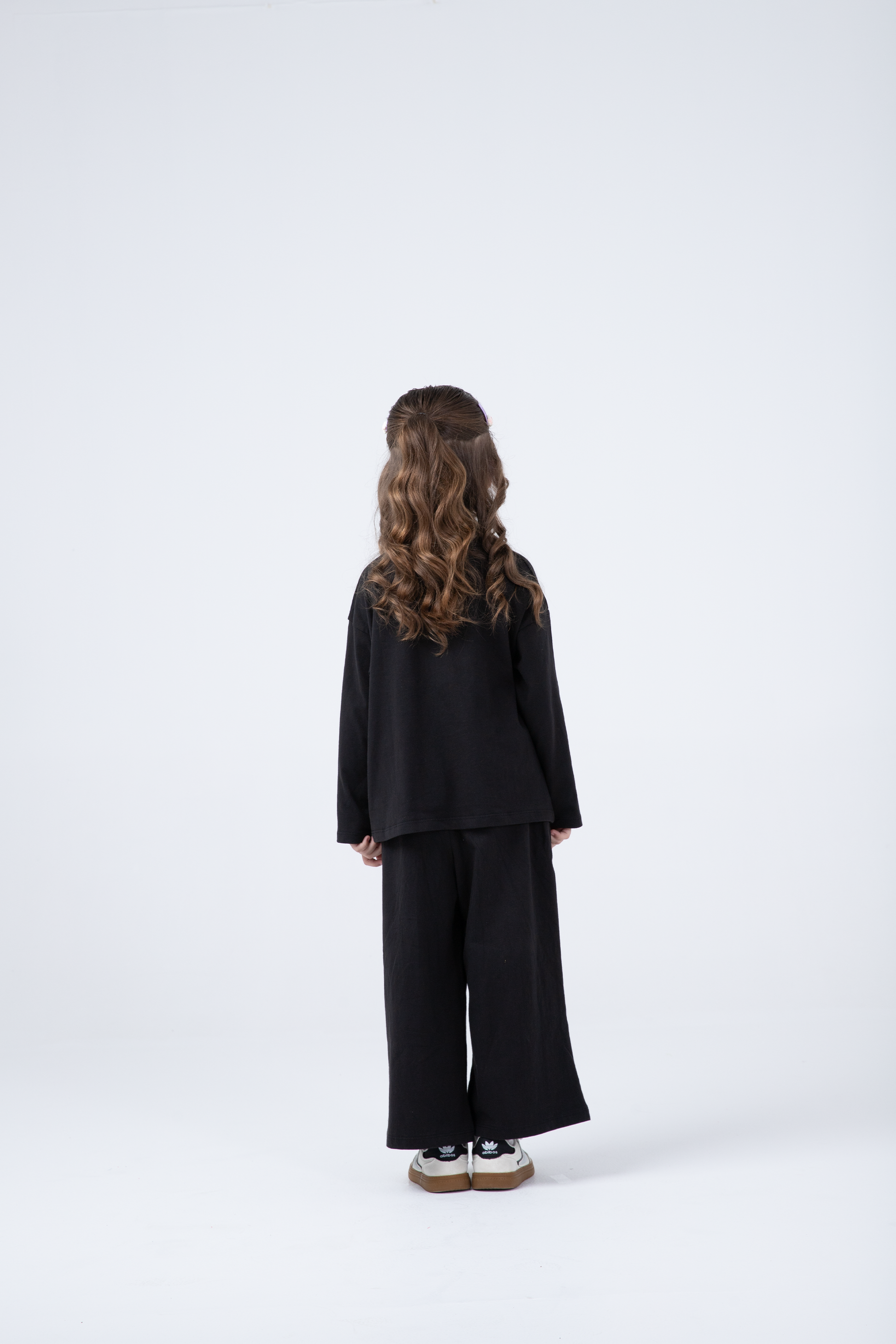 This adorable black co-ord set brings charm and comfort together. The long sleeve top features a cheerful heart-shaped floral graphic on the chest pocket, paired with matching pants. Crafted from soft heavy jersey, it's ideal for playtime or casual outings. A trendy look with effortless ease.