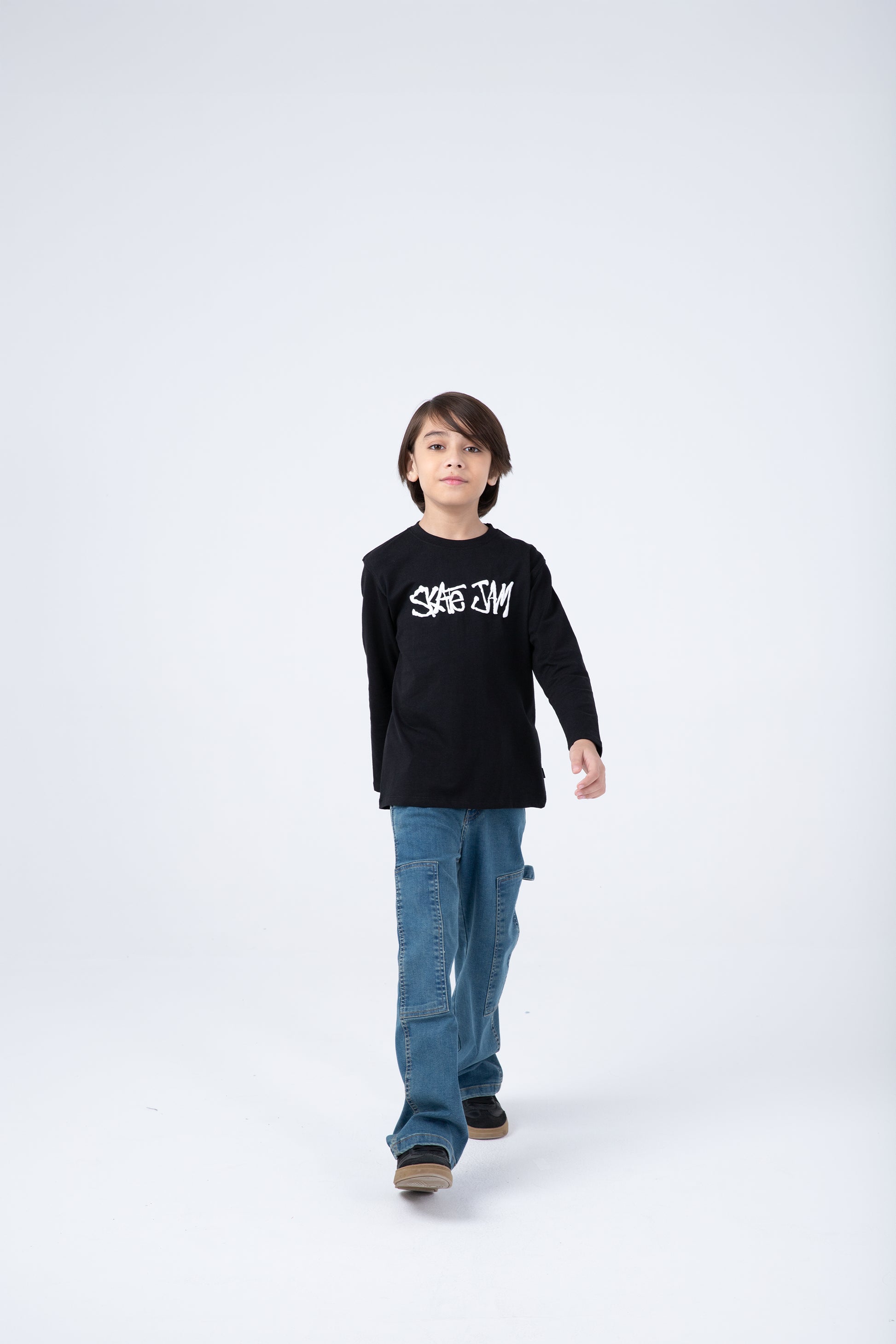 This black “Skate Jam” t-shirt is made for little rebels with big energy. Built from high-quality heavy jersey, it provides all-day comfort without sacrificing durability. The edgy front print adds a splash of attitude to their everyday wardrobe. Ideal for layering or standing out solo.