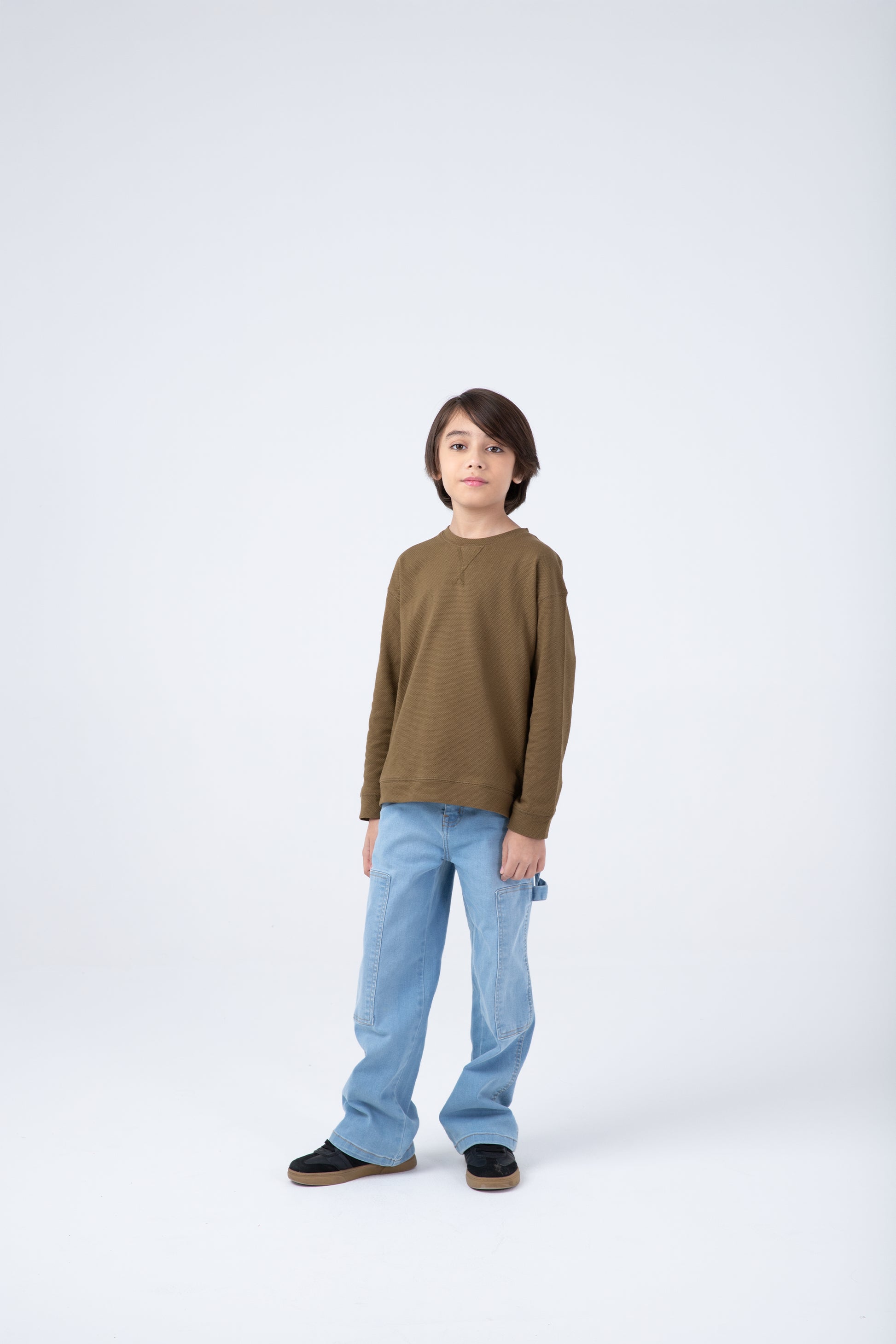 Made from soft combed pique fabric, this olive green tee brings texture and comfort together. Its minimal design with classic crew neck and ribbed cuffs makes it easy to style for everyday wear. Whether it’s playtime or downtime, this tee keeps your boy cool, comfortable, and ready for anything.