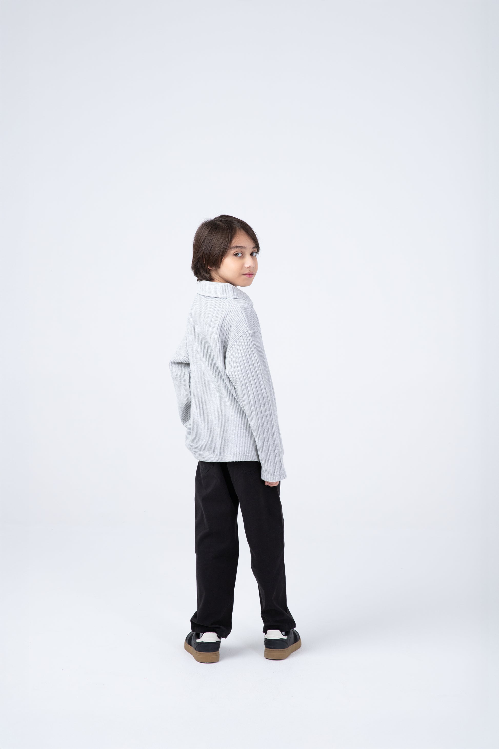 This boys’ thermal polo in light grey is made for chilly days and smart looks. With a soft waffle texture and a sharp collar, it offers both warmth and polish. Perfect for layering under jackets or wearing solo for a sleek, winter-ready outfit that’s easy to dress up or down.