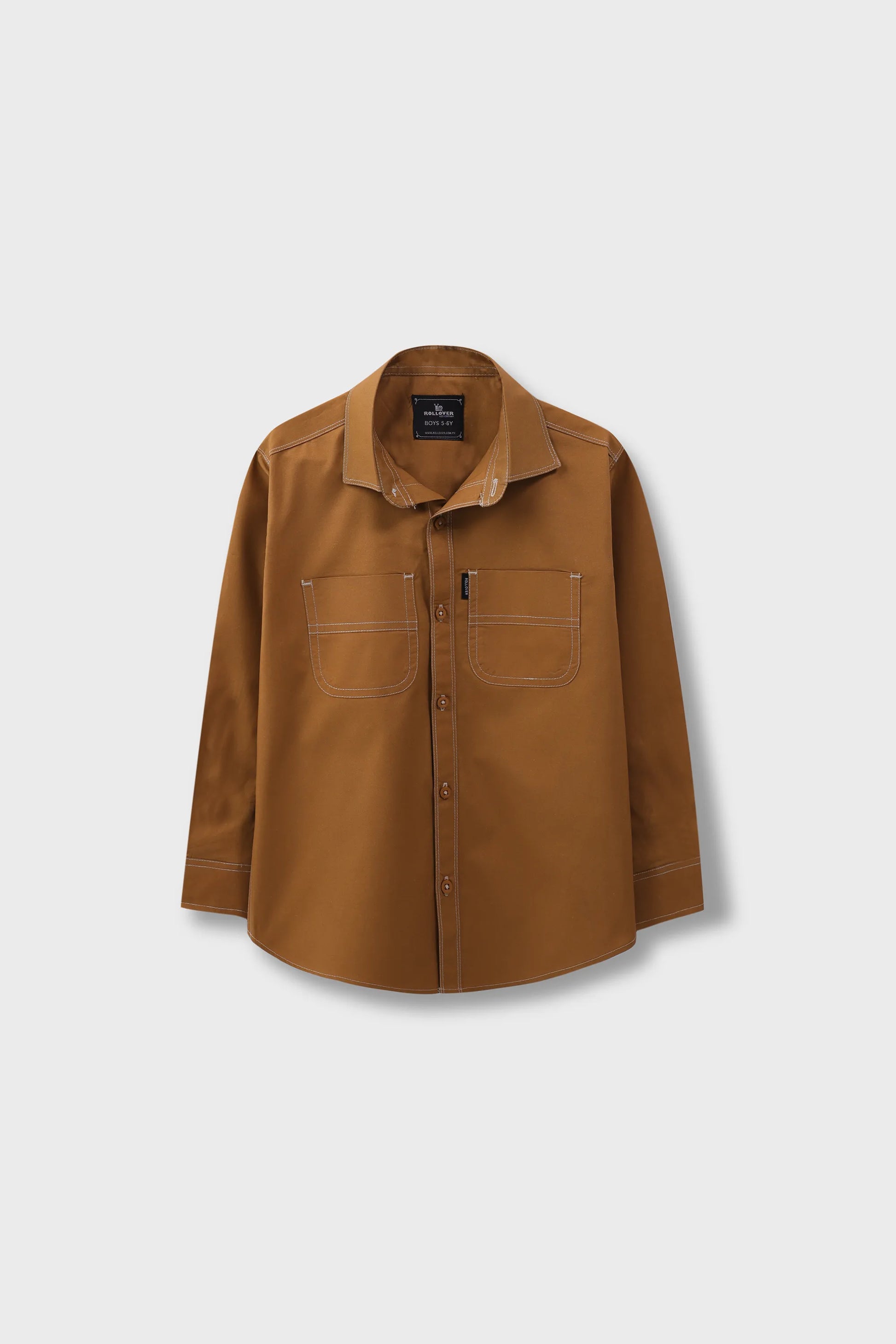 This boys' brown cotton shirt is tailored for comfort and rugged charm. Contrast topstitching adds bold character, while twin flap pockets enhance functionality. Ideal for layering or wearing solo, it’s built for school days and weekend plans alike.
