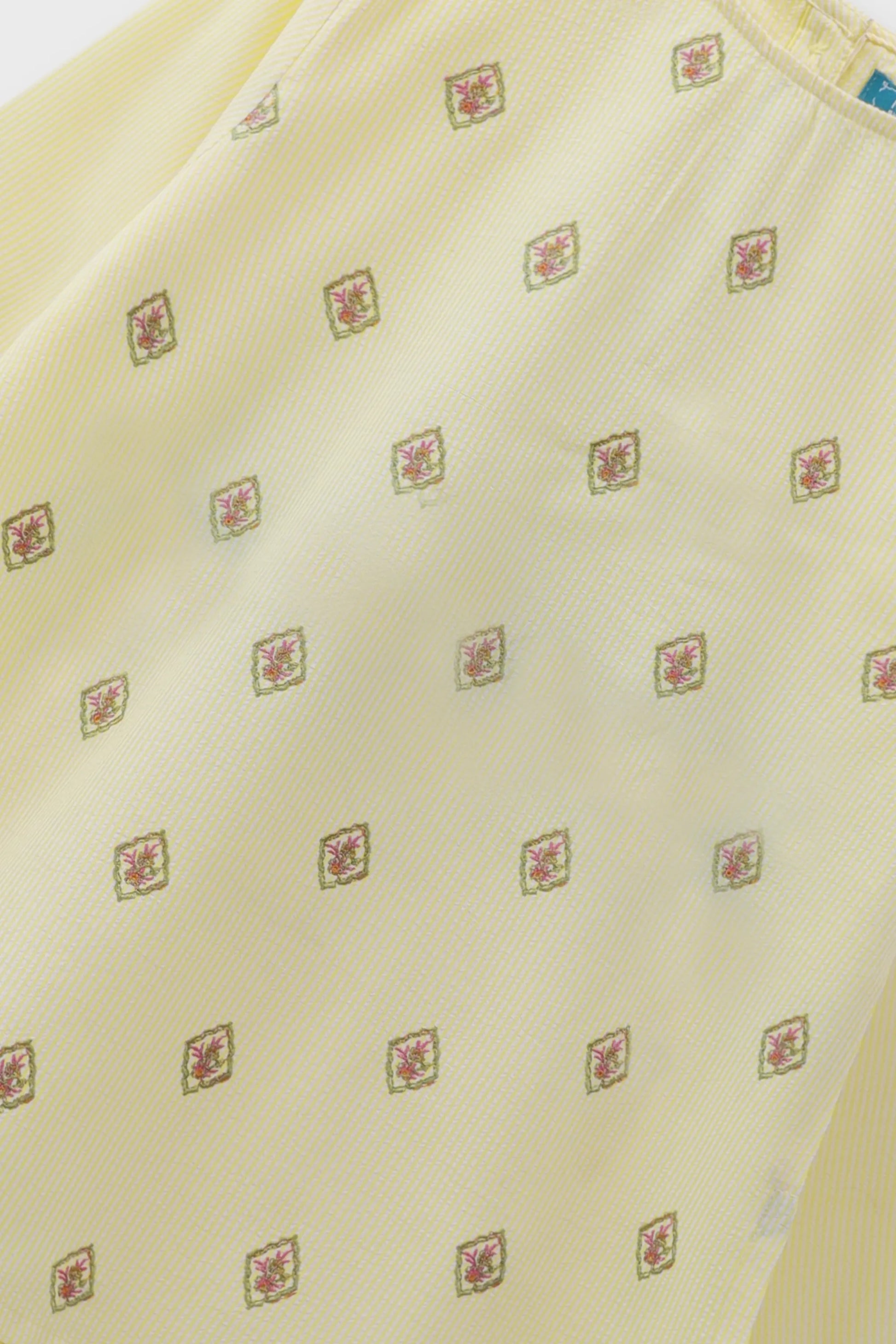 Crafted for elegance and ease, this girls' two-piece set pairs a floral-embroidered top with eye-catching hem detailing and wide-leg bottoms. Made from breathable cotton in a vibrant yellow, it's designed to keep your little one cool, comfortable, and effortlessly stylish during playdates, family outings, or weekend festivities.