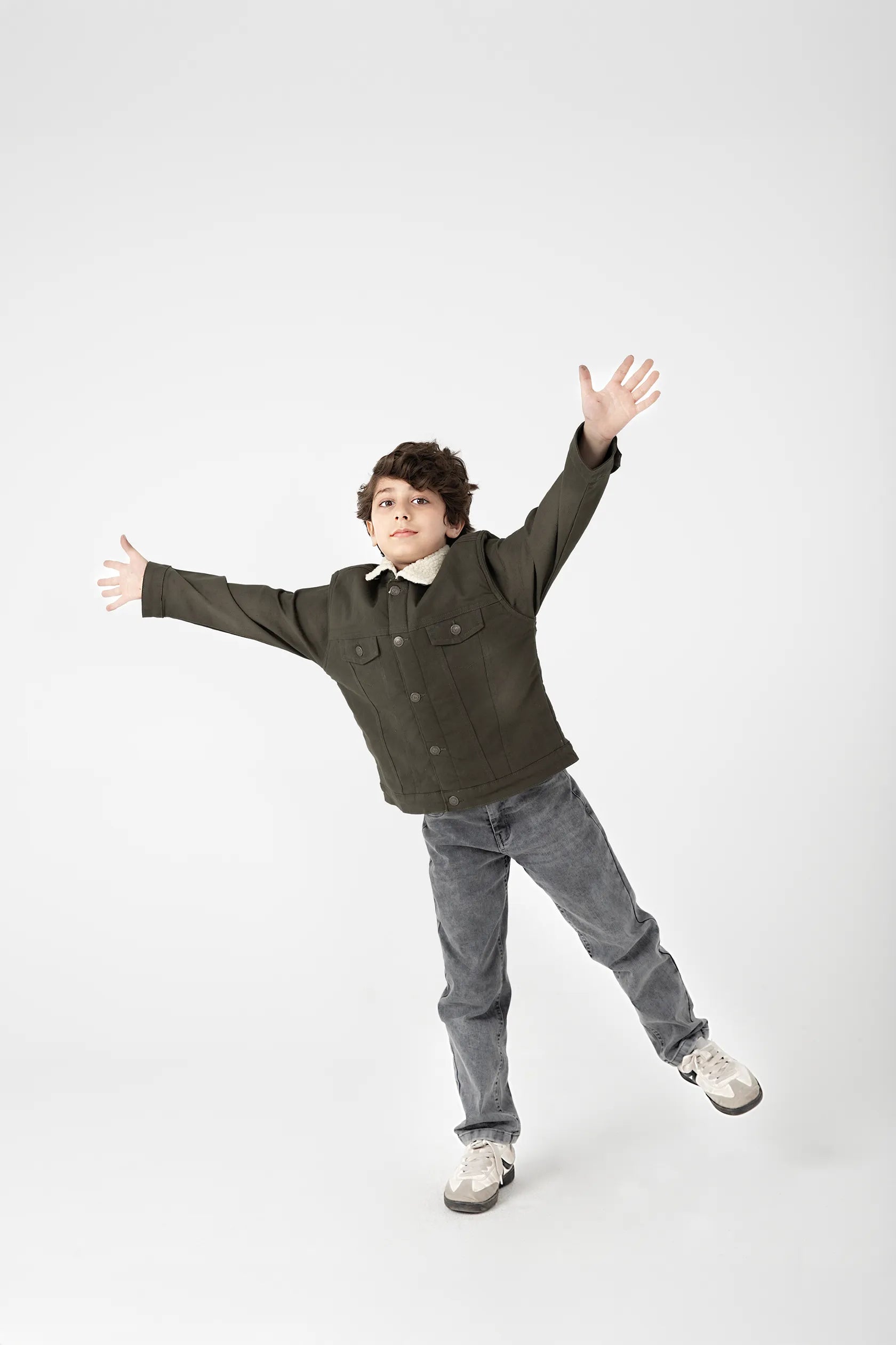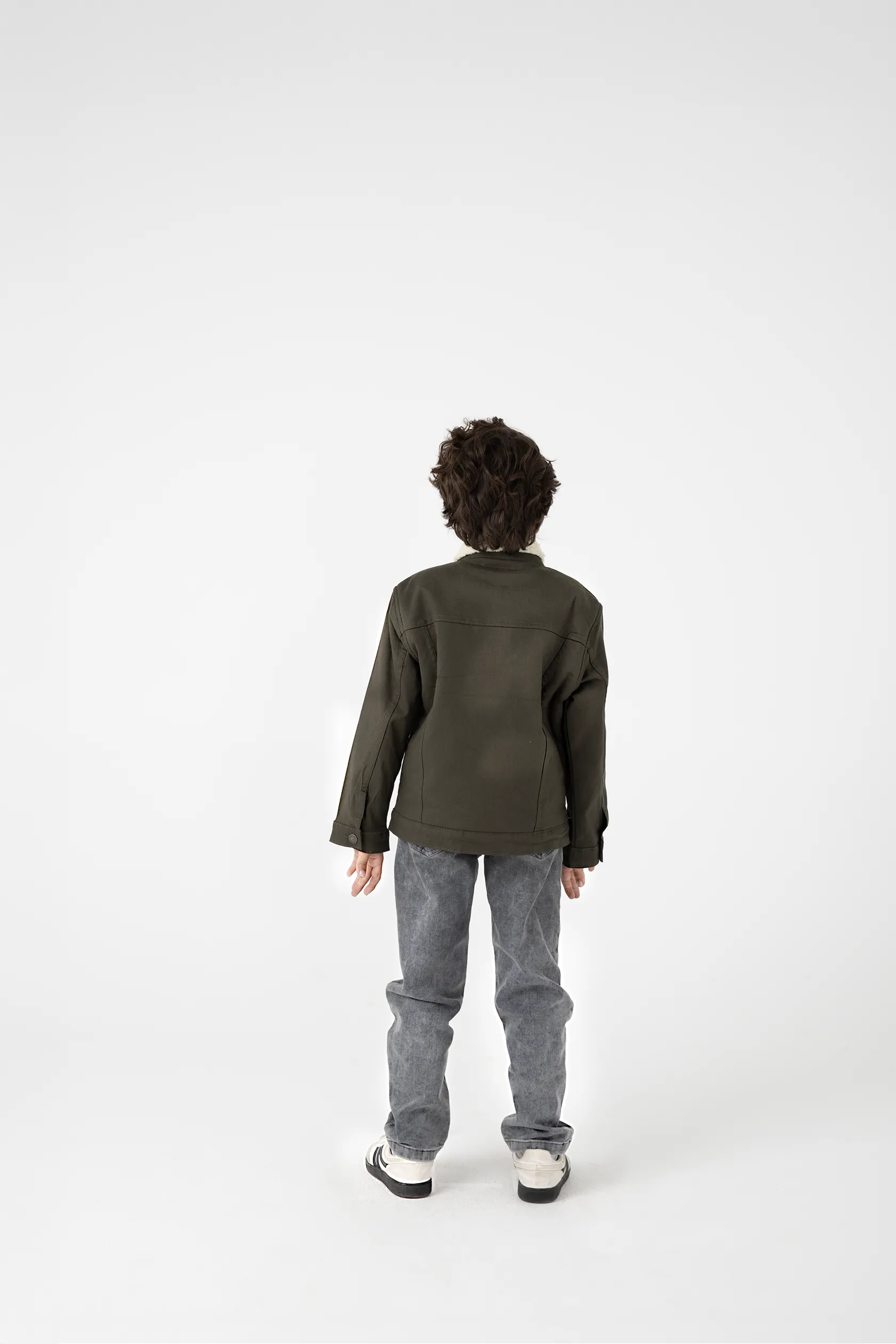 Built for cool adventures, the Olive Trail Coat features rugged twill fabric and a cozy sherpa collar and inner lining for added warmth. Buttoned closure ensures a secure fit while front flap pockets hold his essentials. The dark olive hue adds bold style to this winter-ready jacket. Functional, fashionable, and full of attitude.