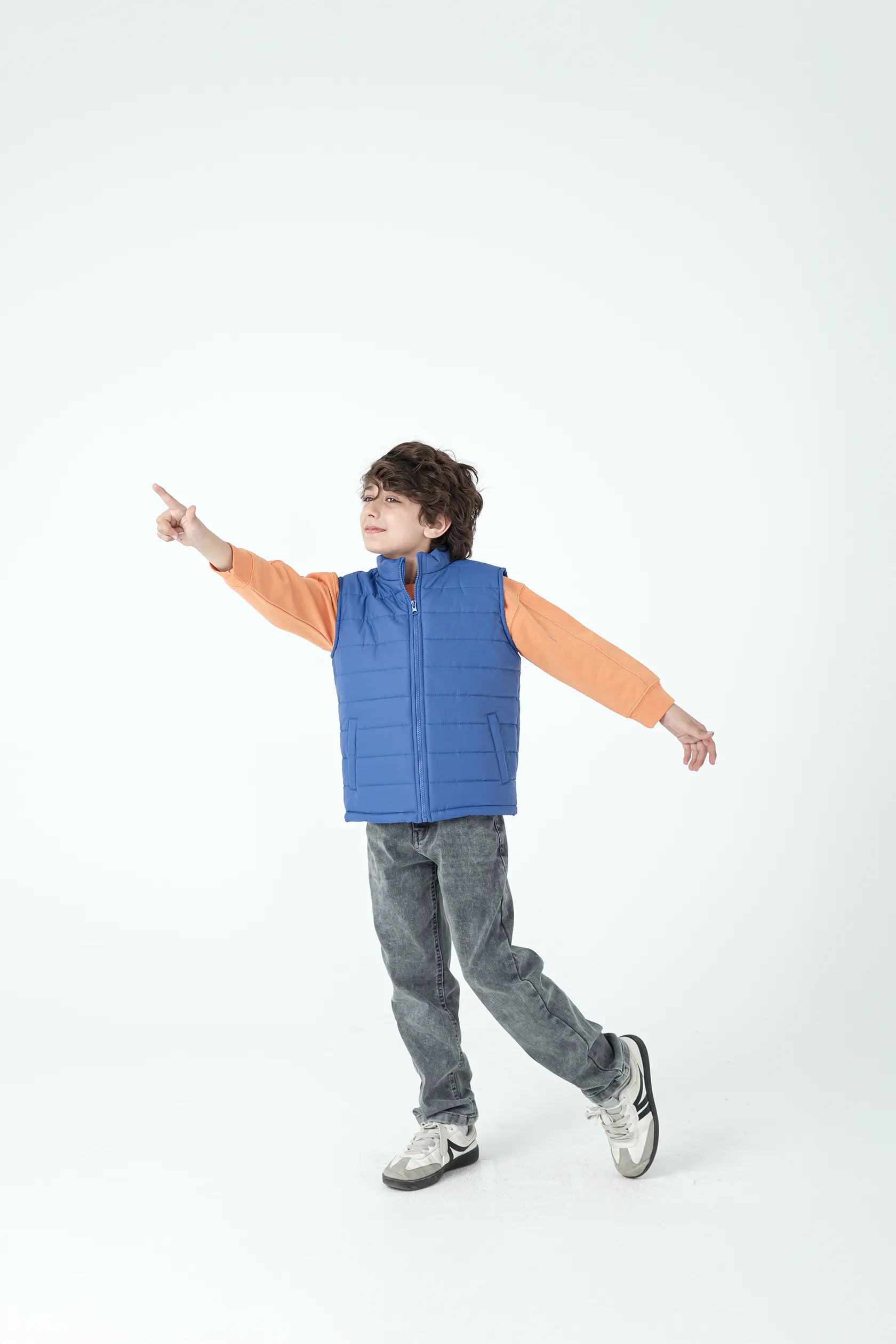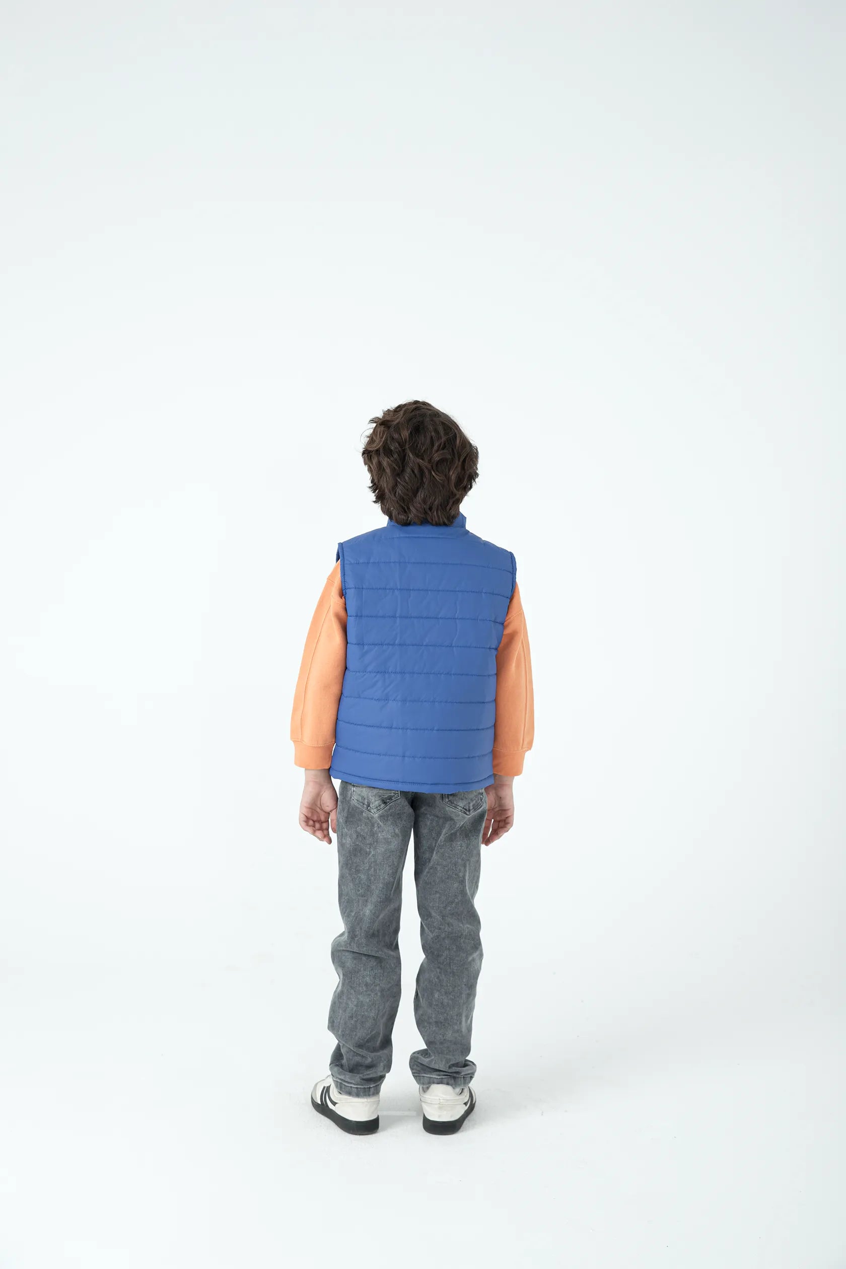 Let him move freely while staying warm in this sleek sleeveless puffer. Crafted in breathable bubble fabric, the royal blue design features a snug front zipper and side pockets for essentials. It’s the ultimate grab-and-go outerwear layer for school days, playdates, or outdoor strolls. Functional meets fashionable.