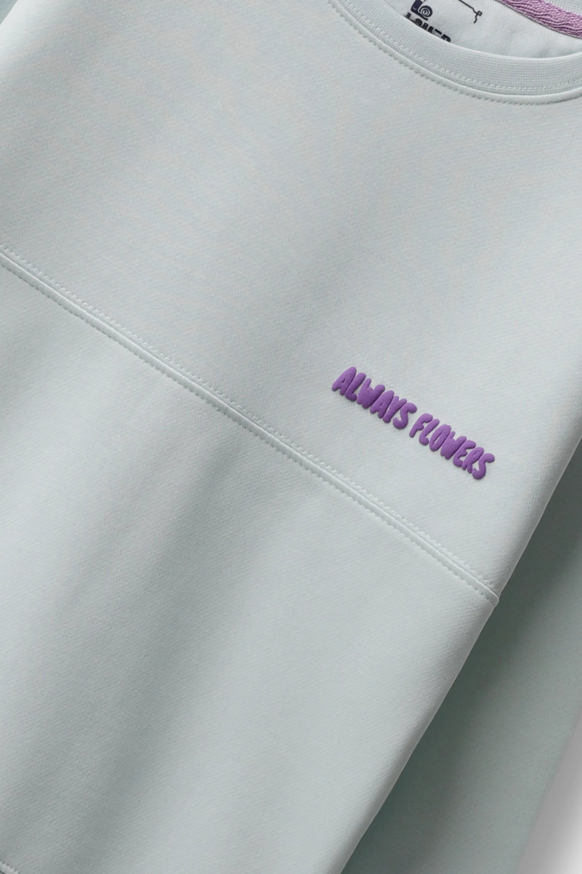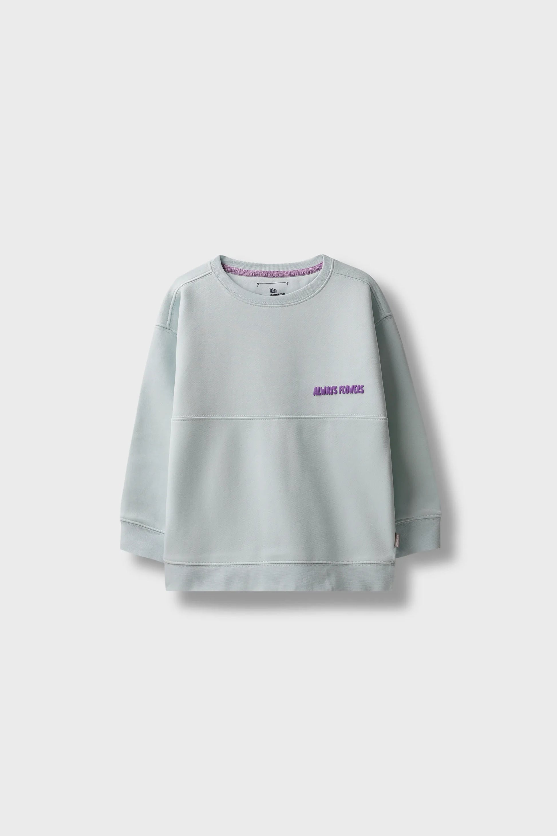 Delicate and cozy, this sky blue fleece sweatshirt is made for comfort-filled days. The soft fabric and relaxed silhouette offer ease of movement, while the soft lilac "Moms Flowers" embroidery adds a gentle pop of charm. A perfect pick for casual outings, school days, or simply lounging in style.