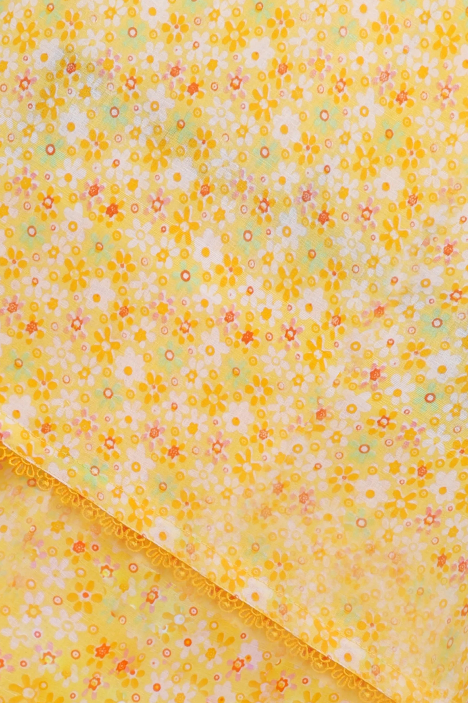 This charming girls’ kurta trouser set is crafted from breathable cotton, perfect for warm weather. The yellow floral print adds a cheerful, vibrant look. The sleeveless kurta features neat lace edging and front button accents, paired with a comfortable elasticated trouser for easy all-day wear.