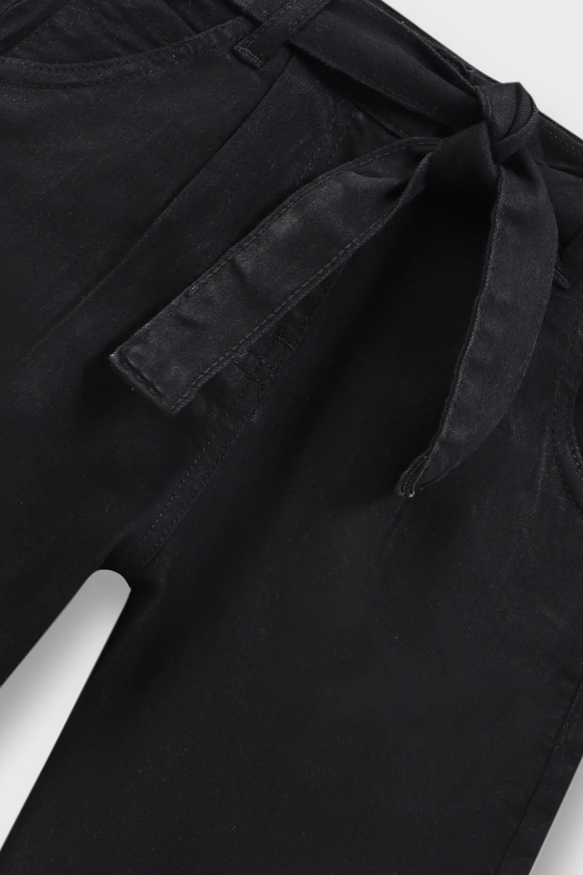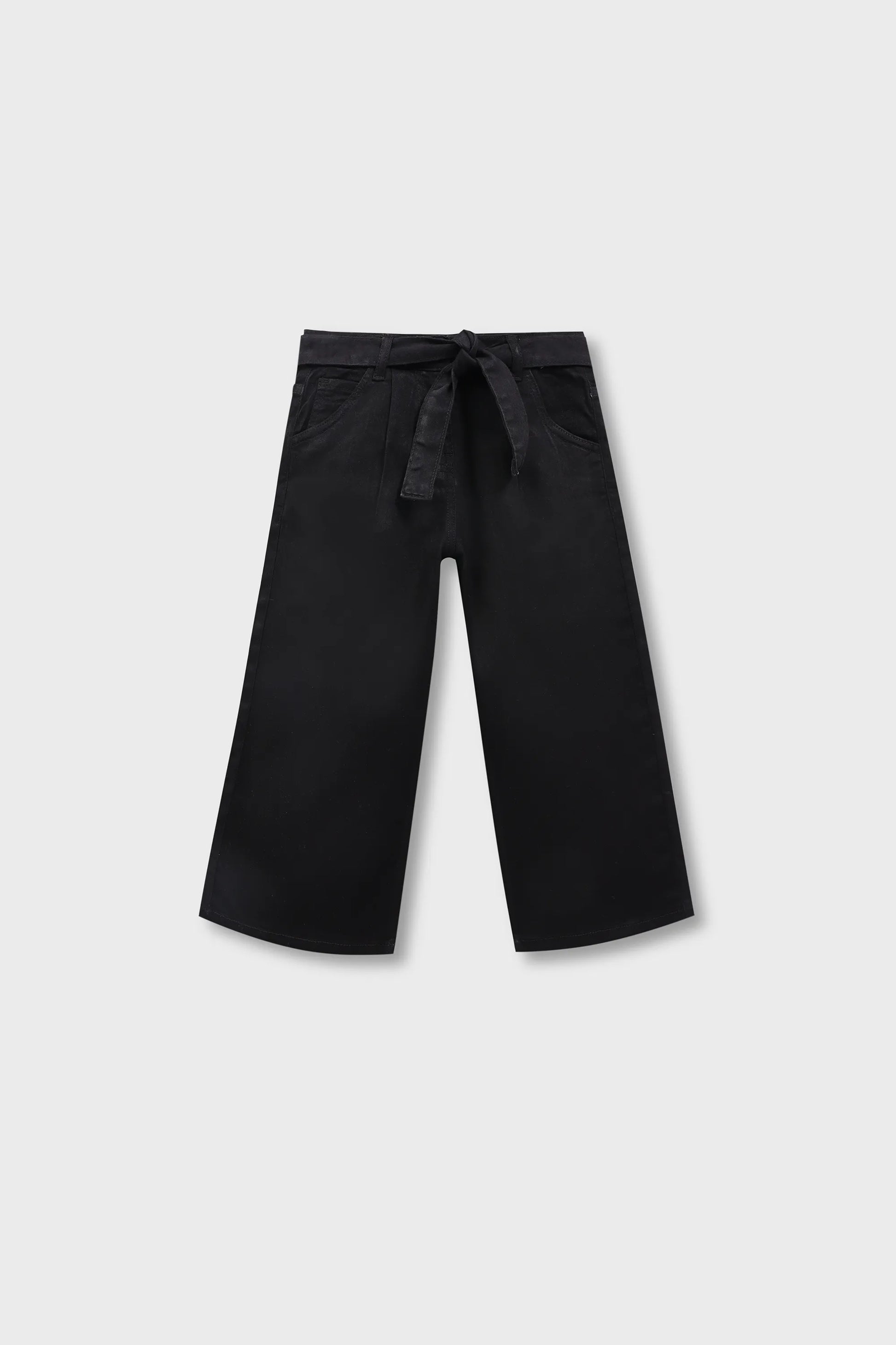 These stylish girls’ pants are crafted from durable black denim, offering a modern wide-leg silhouette. The attached same-fabric belt adds a smart, adjustable fit. Designed with a clean finish, soft feel, and everyday comfort, these versatile trousers pair perfectly with tees and tops for school, outings, or casual wear.