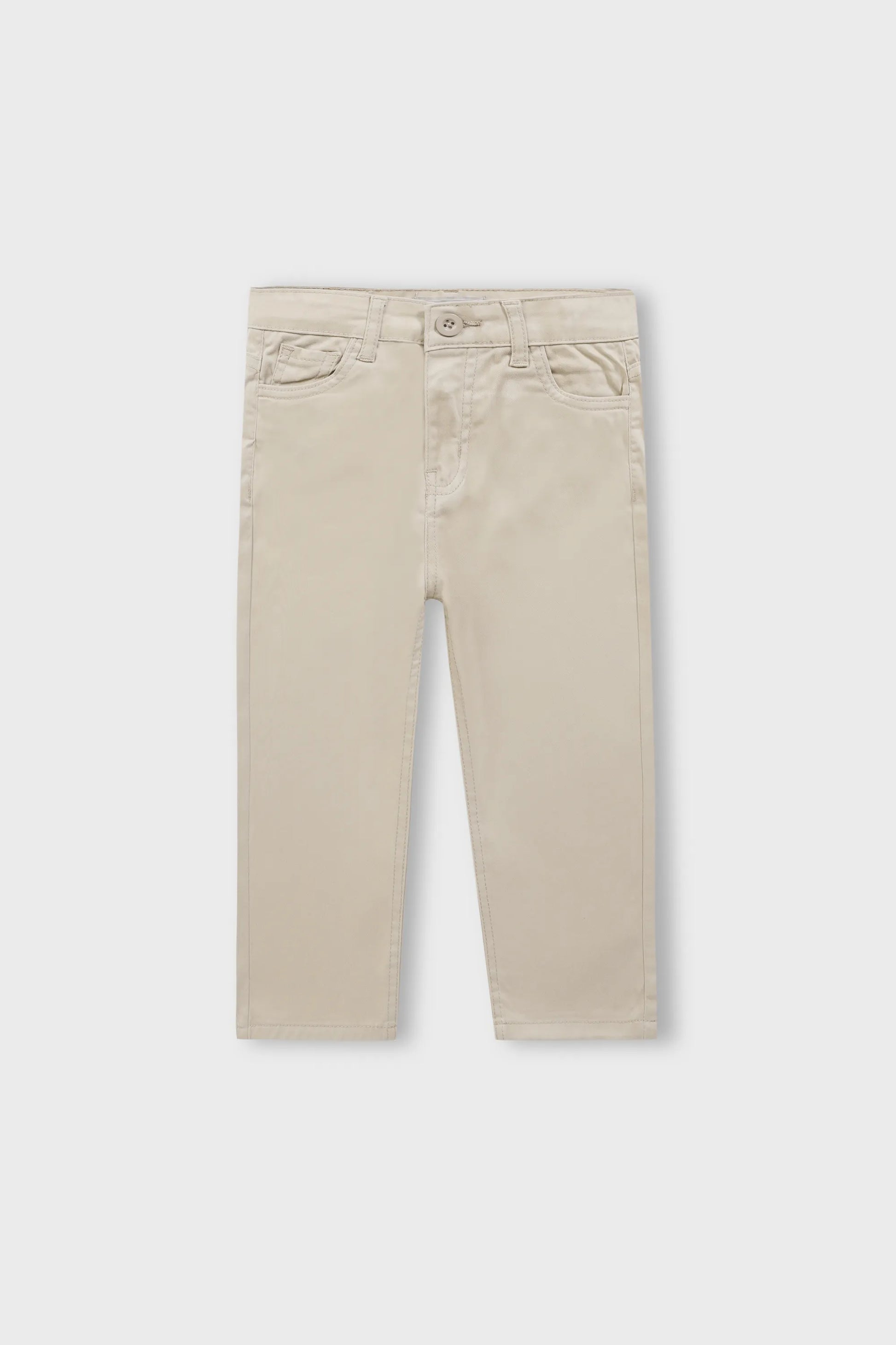 Crafted from durable twill fabric, these beige pants feature a clean straight fit for everyday comfort. Designed with a secure waist belt, smooth fly closure, and practical round pockets with a coin pocket. Double seam stitching enhances strength, making them ideal for school, outings, and smart casual wear.