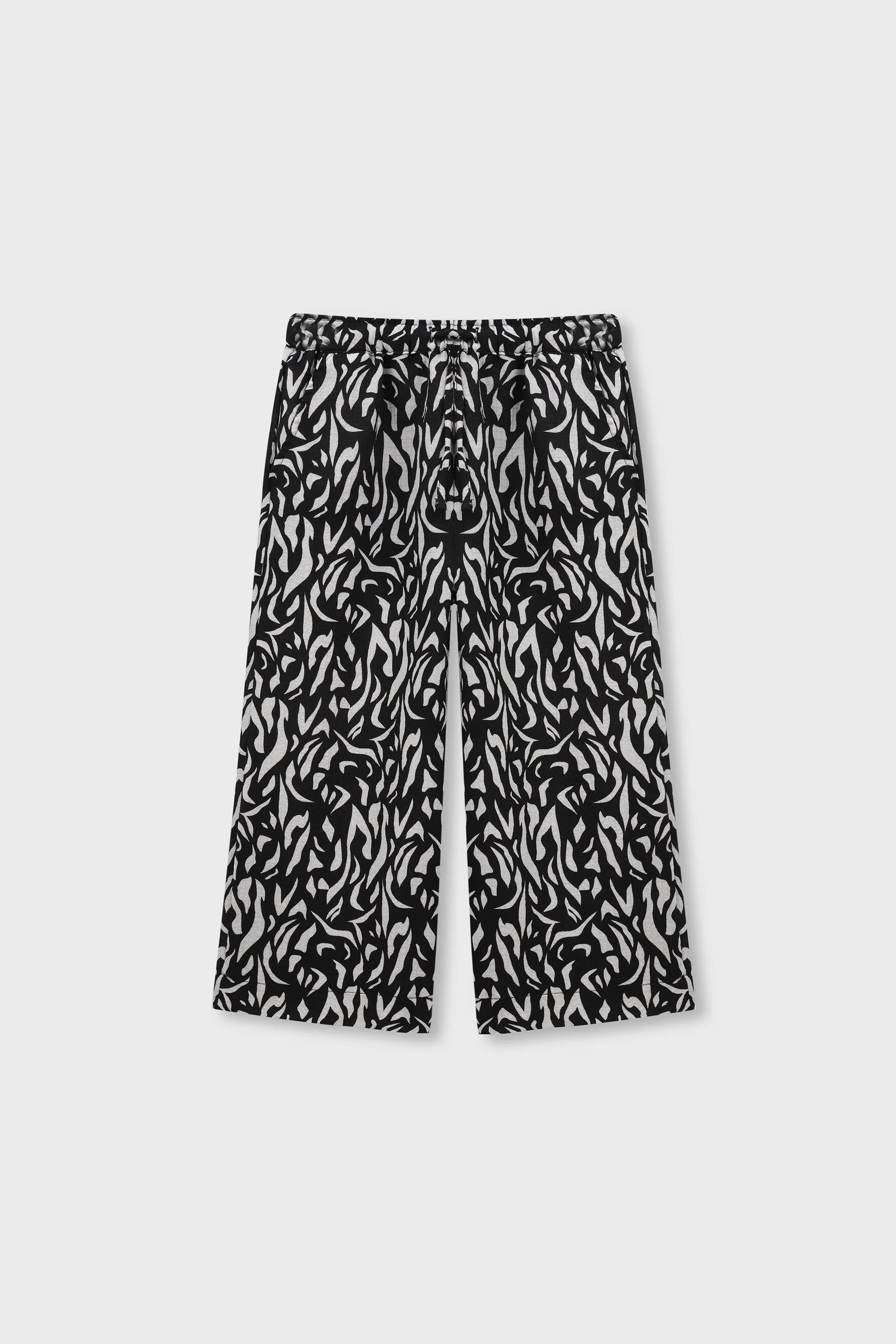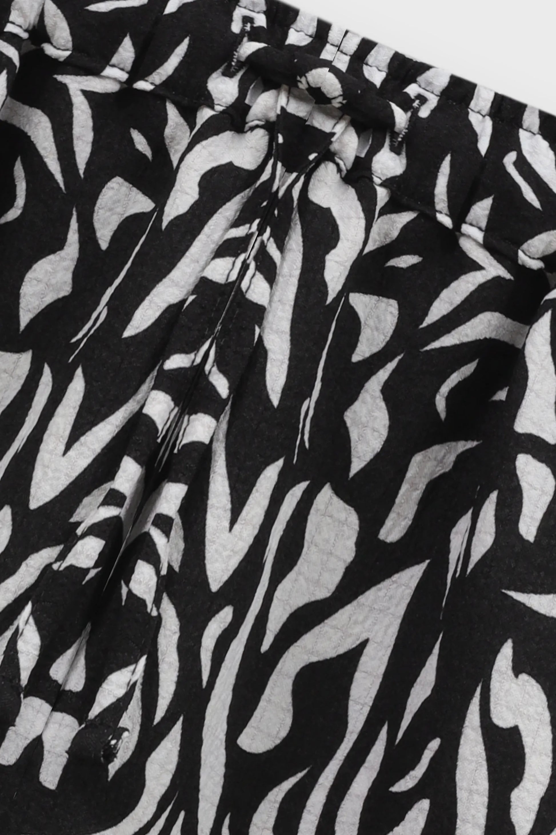 For an effortlessly stylish look, these black georgette culottes with a relaxed fit are a must-have. Designed with an elastic waist and a self-fabric drawcord, they provide a customizable fit. Side pockets add convenience, and the straight bottom hem adds a tailored look to a laid-back design.