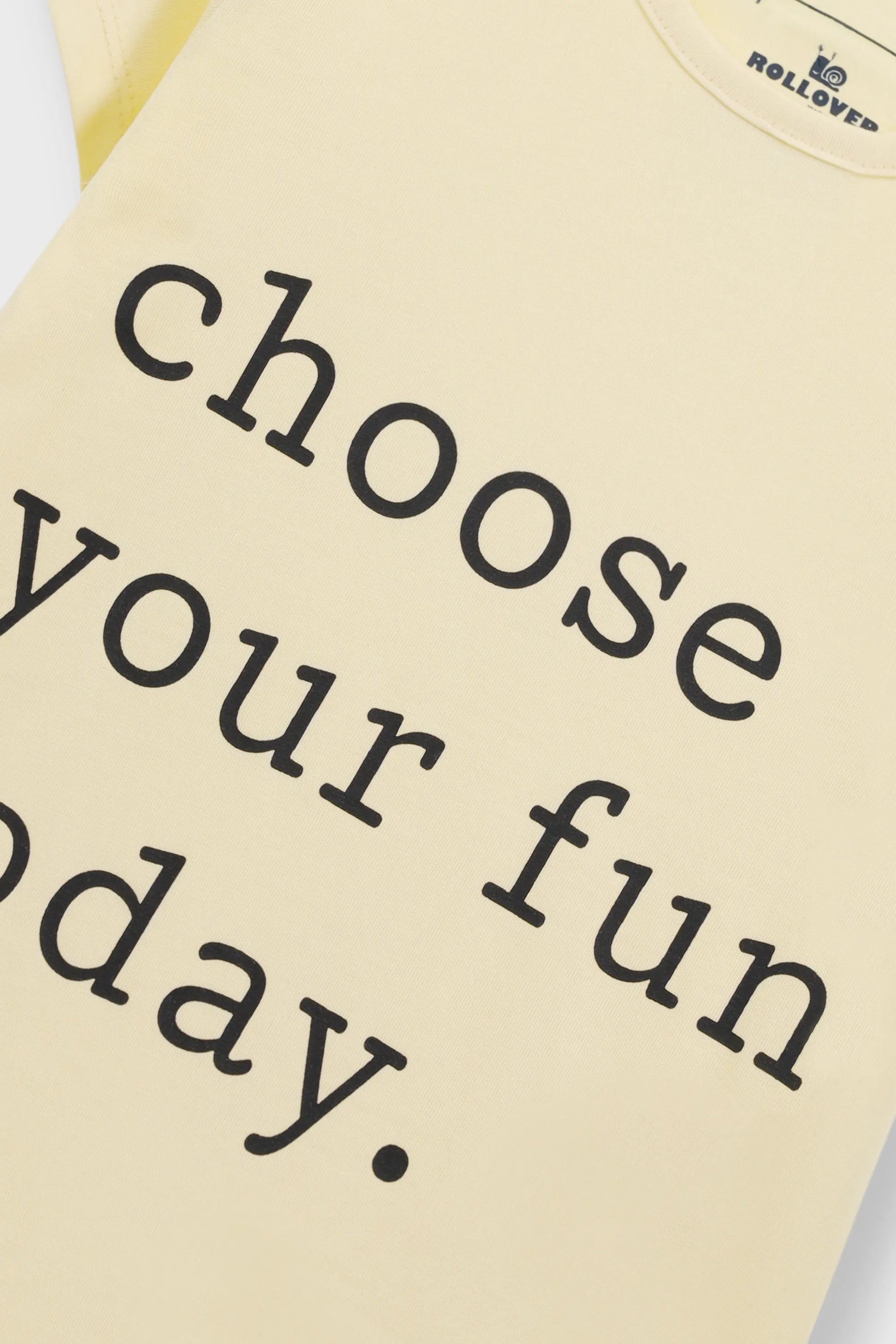 This light yellow jersey t shirt features a cheerful A line silhouette that flows gently for all day comfort. The playful message encourages choosing joy and fun every day. Soft fabric, relaxed fit, and bright tone make it ideal for casual wear, playtime, and sunny outings.