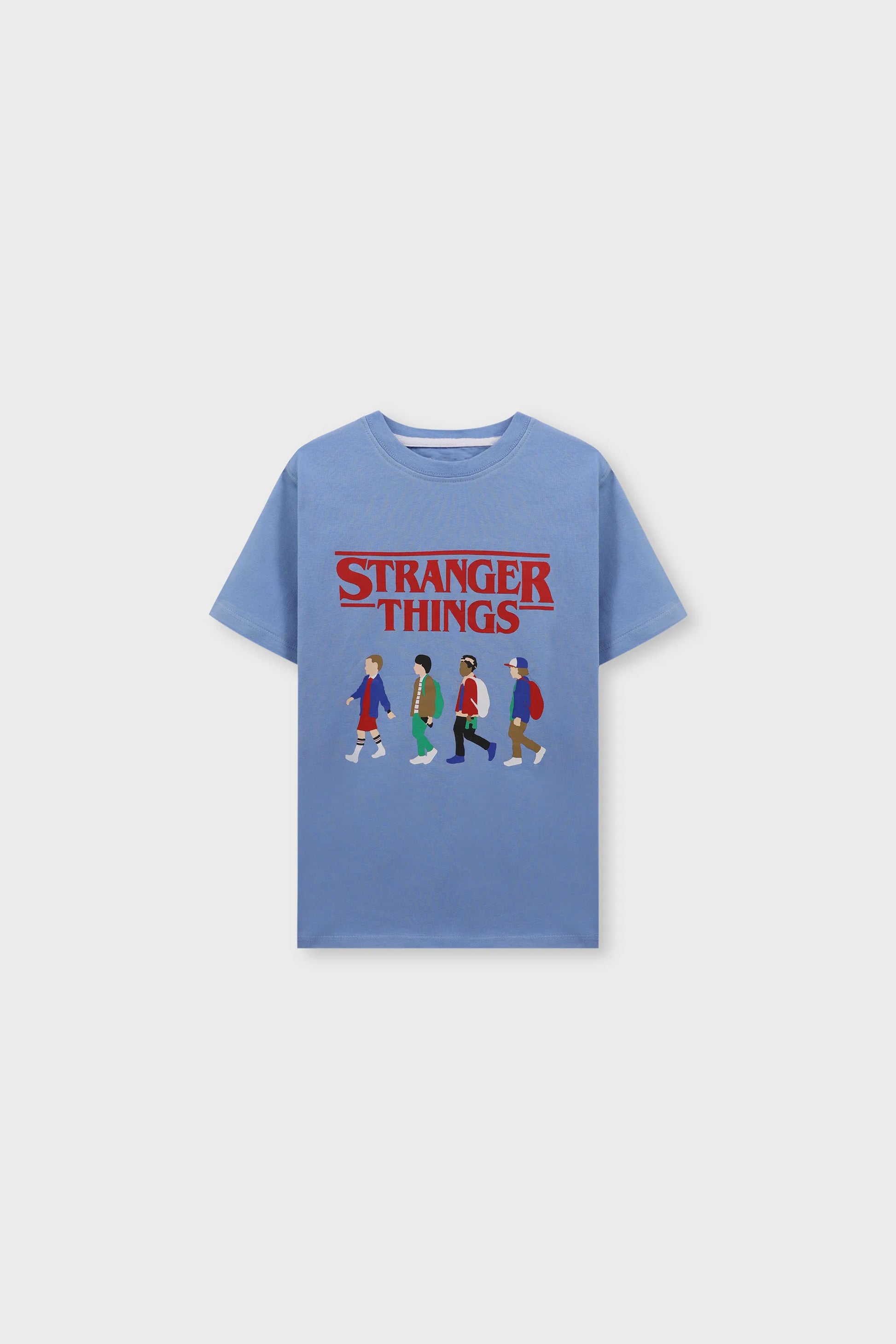 Get ready for a stylish ride with this blue Stranger Things tee! The graphic showcases the iconic squad in action, making it a must-have for any fan. Crafted from soft jersey fabric, it’s perfect for everything from lounging at home to hanging out with friends. Who’s ready for adventure?