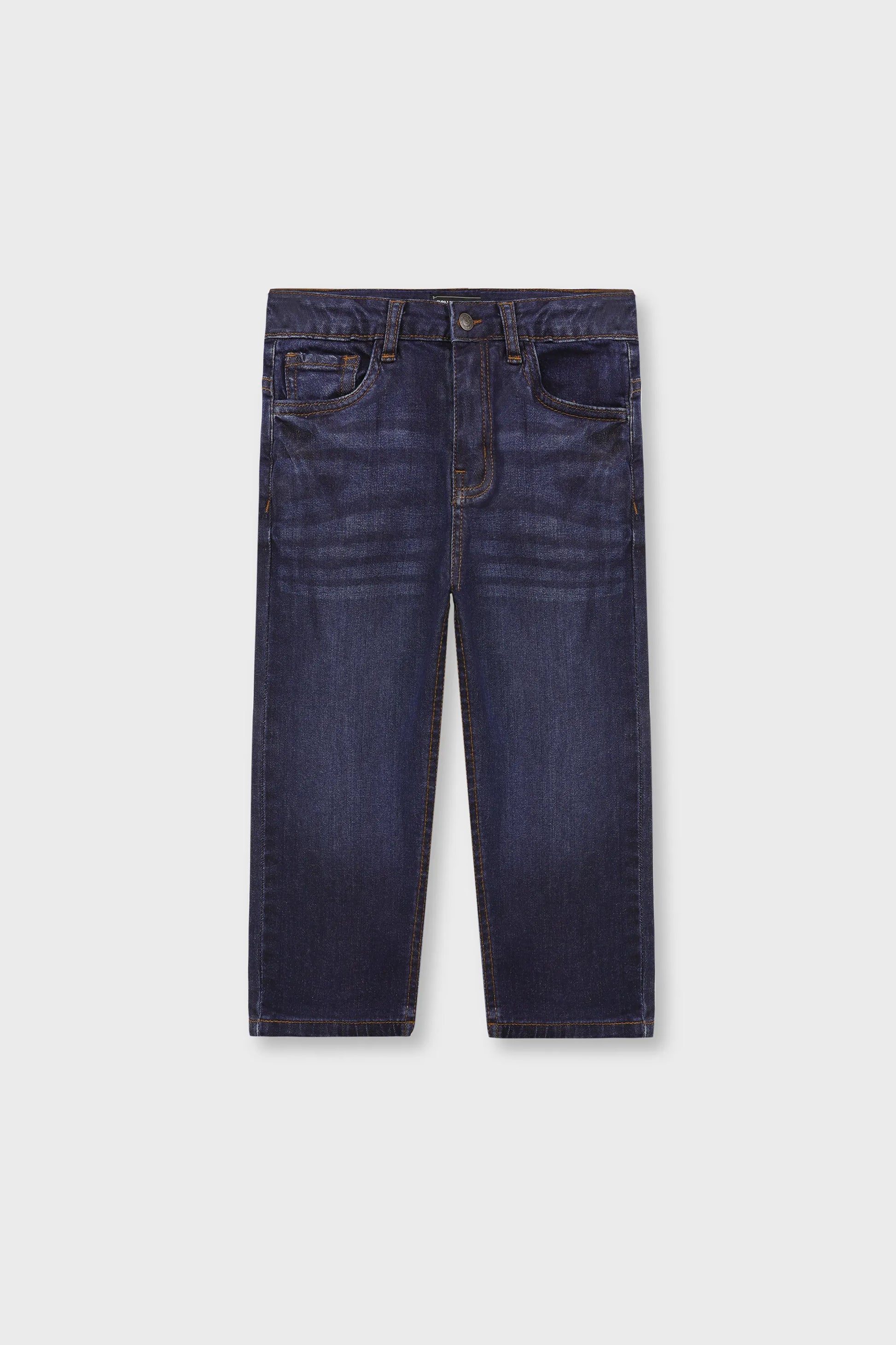 Bring a classic touch to your little one’s wardrobe with these blue denim jeans. Featuring a straight fit and tobacco thread stitching, they come with sturdy antique brass rivets and a coin pocket for extra style. With a well?worn look thanks to the whiskers, these jeans are built to last.